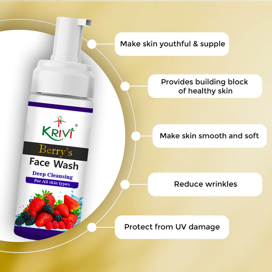 Krivi Berry's Face Wash with Foaming Pump (Paraben Free) 150ml