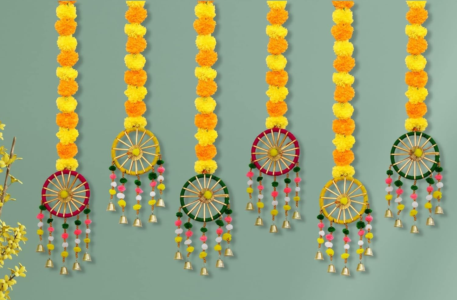 🔯Krivi Presents Decorative Artificial Marigold Fluffy Flowers Colorful Ring Pom Pom Hanging set witch widely used in worldwide to wedding decorations , haldi decoration items for marriage, birthday parties decorations , anniversary celebration decoration , makar sankranti , pongal, diwali , holi decoration to hang across wall, door, balcony, window. it is traditional item made up of woolen and recycled plastic.