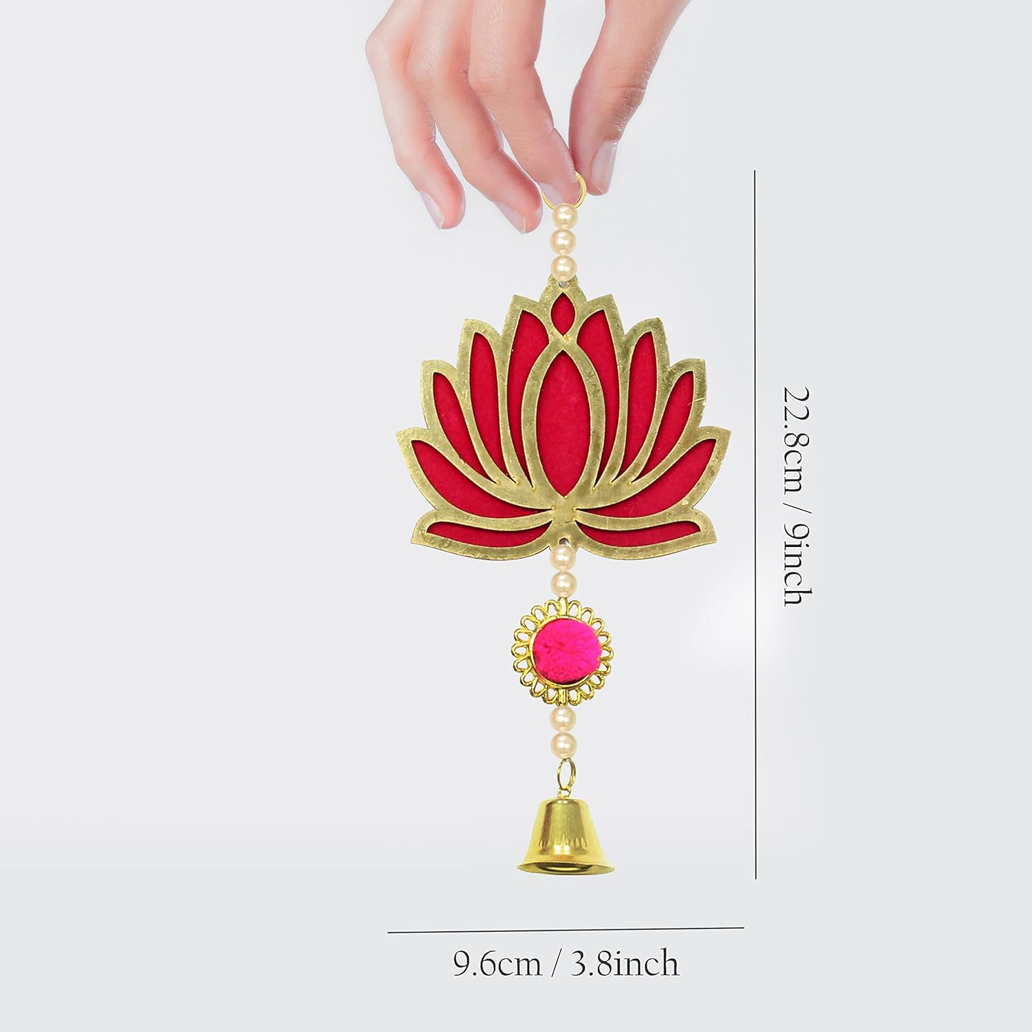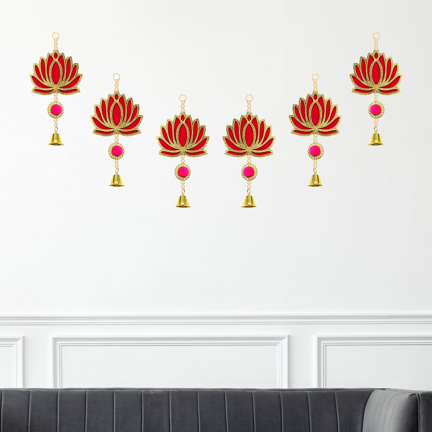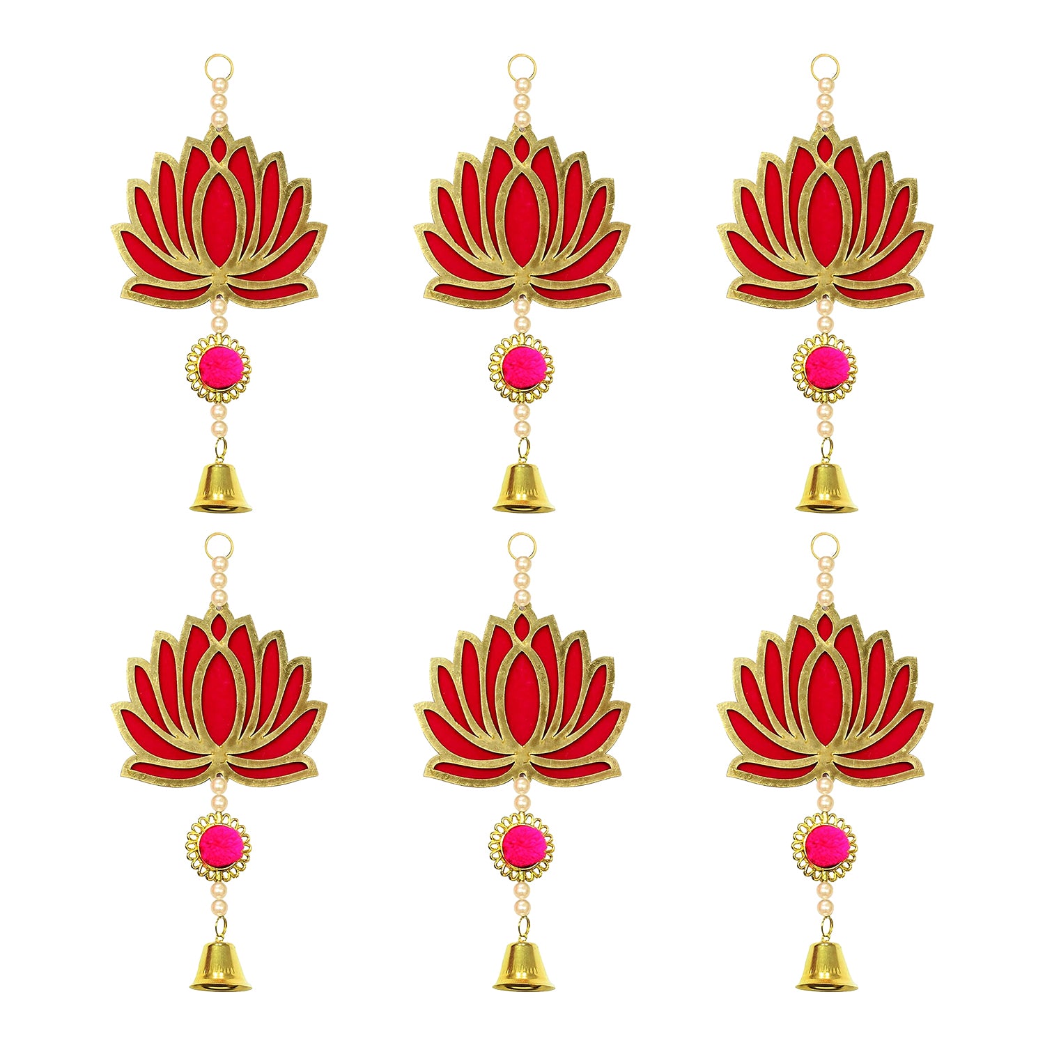 Krivi Lotus Cut Outs With Beads & Metal Bell,, Hangings With Tassels, Floral Wall Decor, Main Entrance Decorations, Backdrop Hangings (6 Pieces)