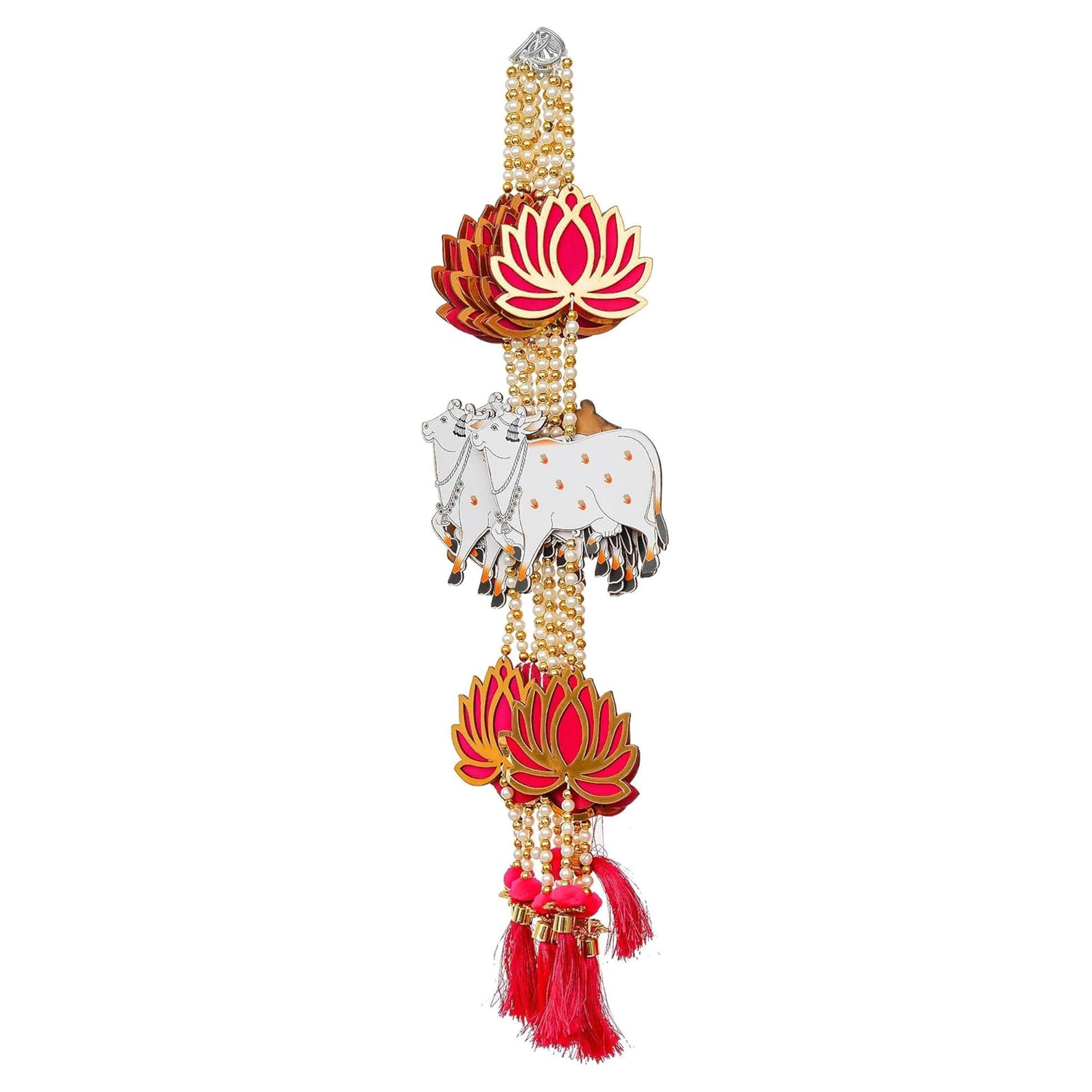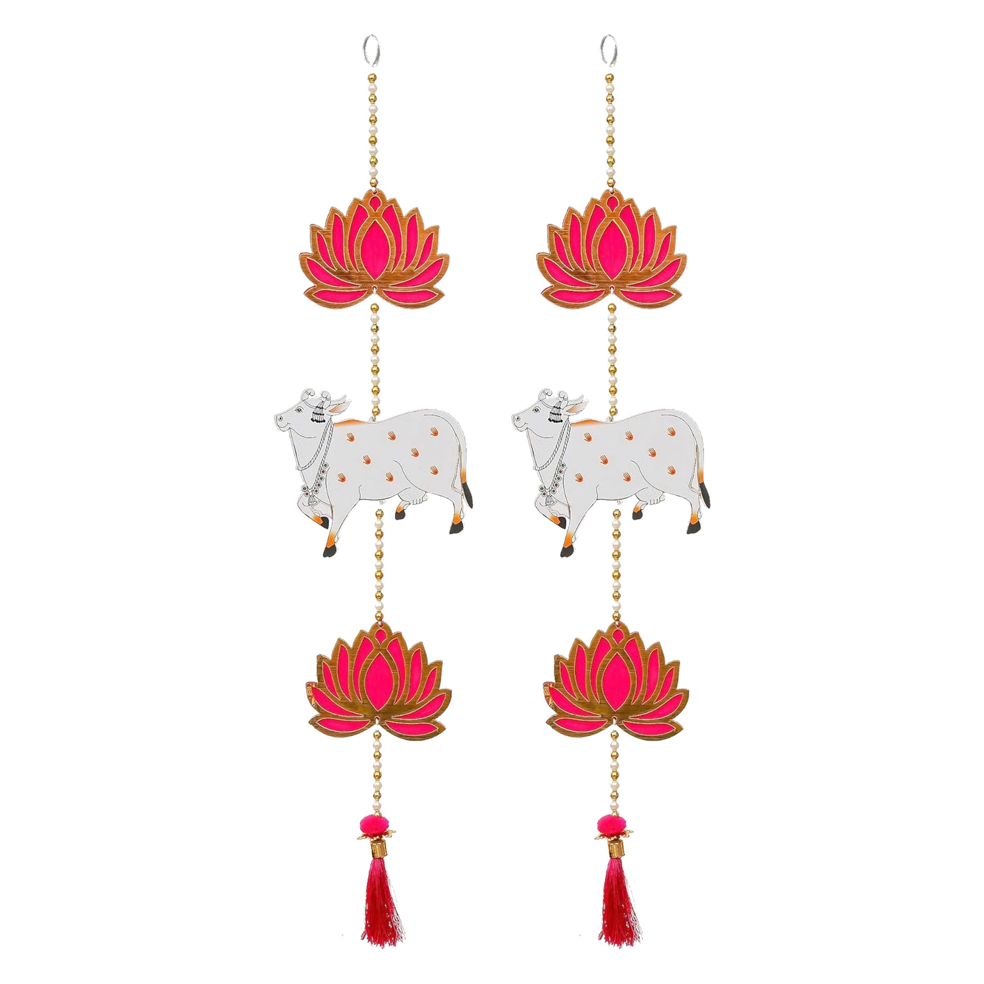 Krivi Lotus with Pichwai Cow Cut Outs, Hangings With Tassels, Floral Wall Decor, Main Entrance Decorations, Backdrop Hangings (2 Pieces)